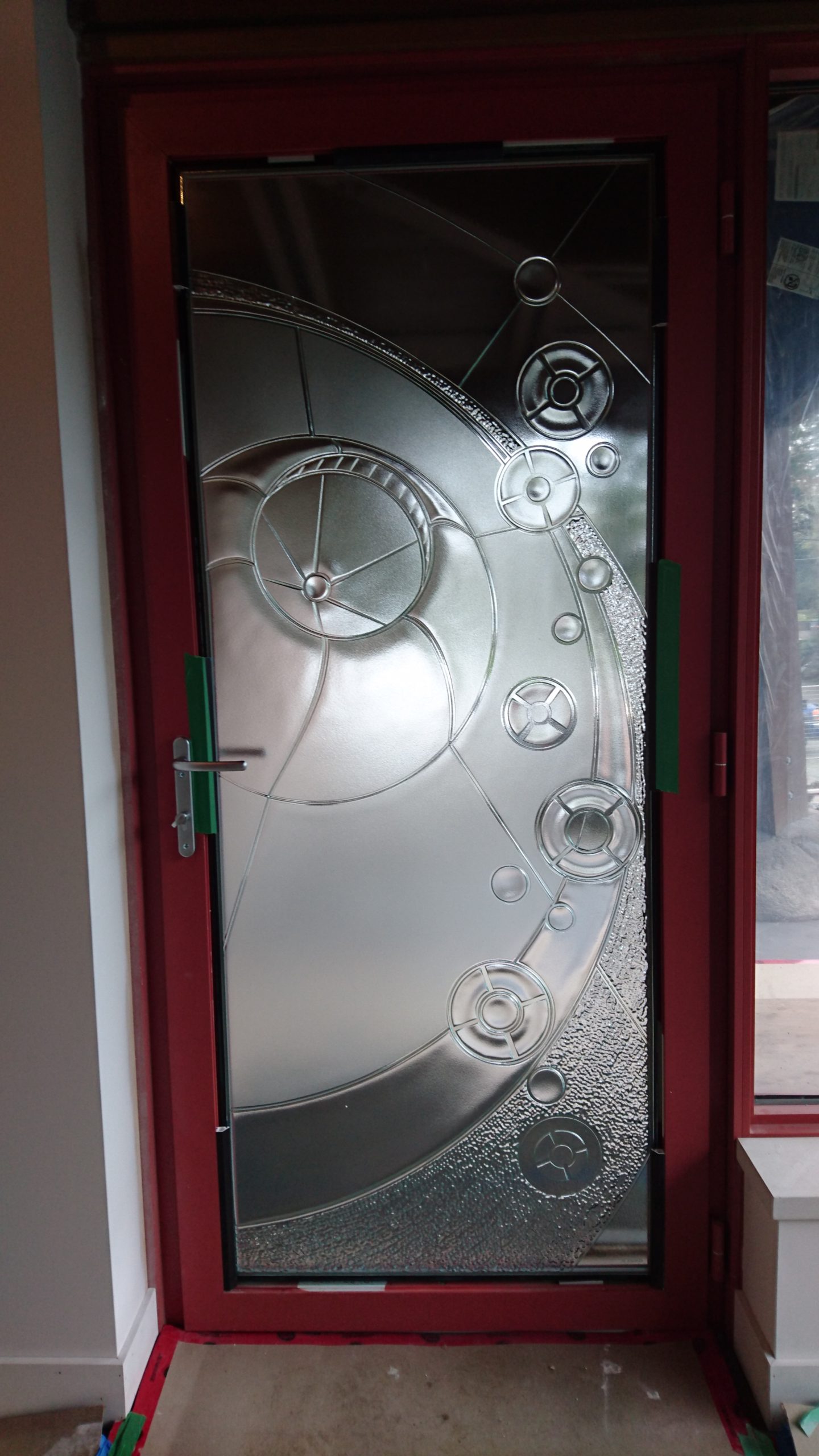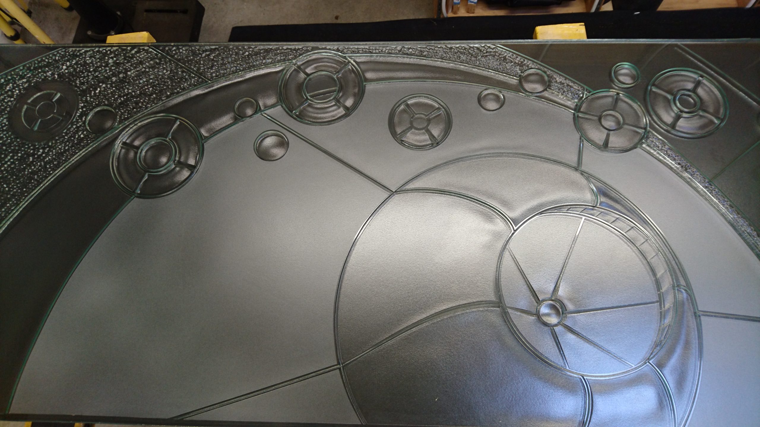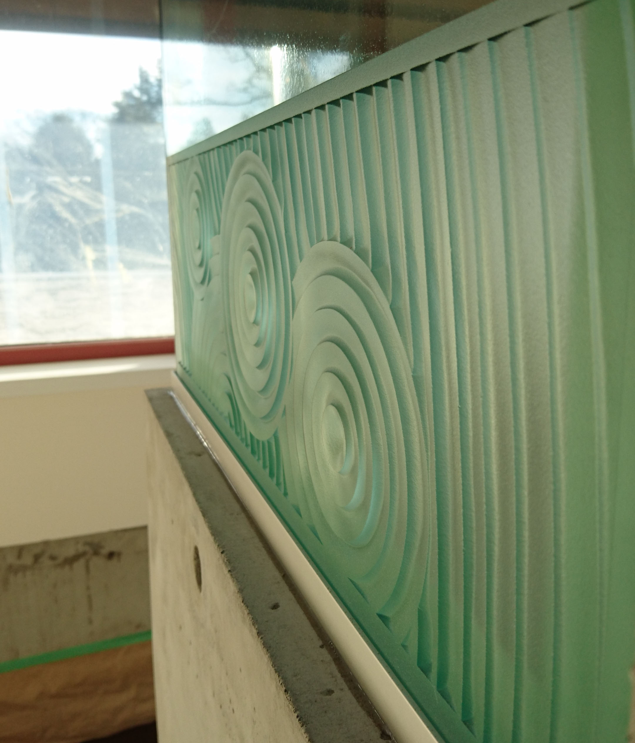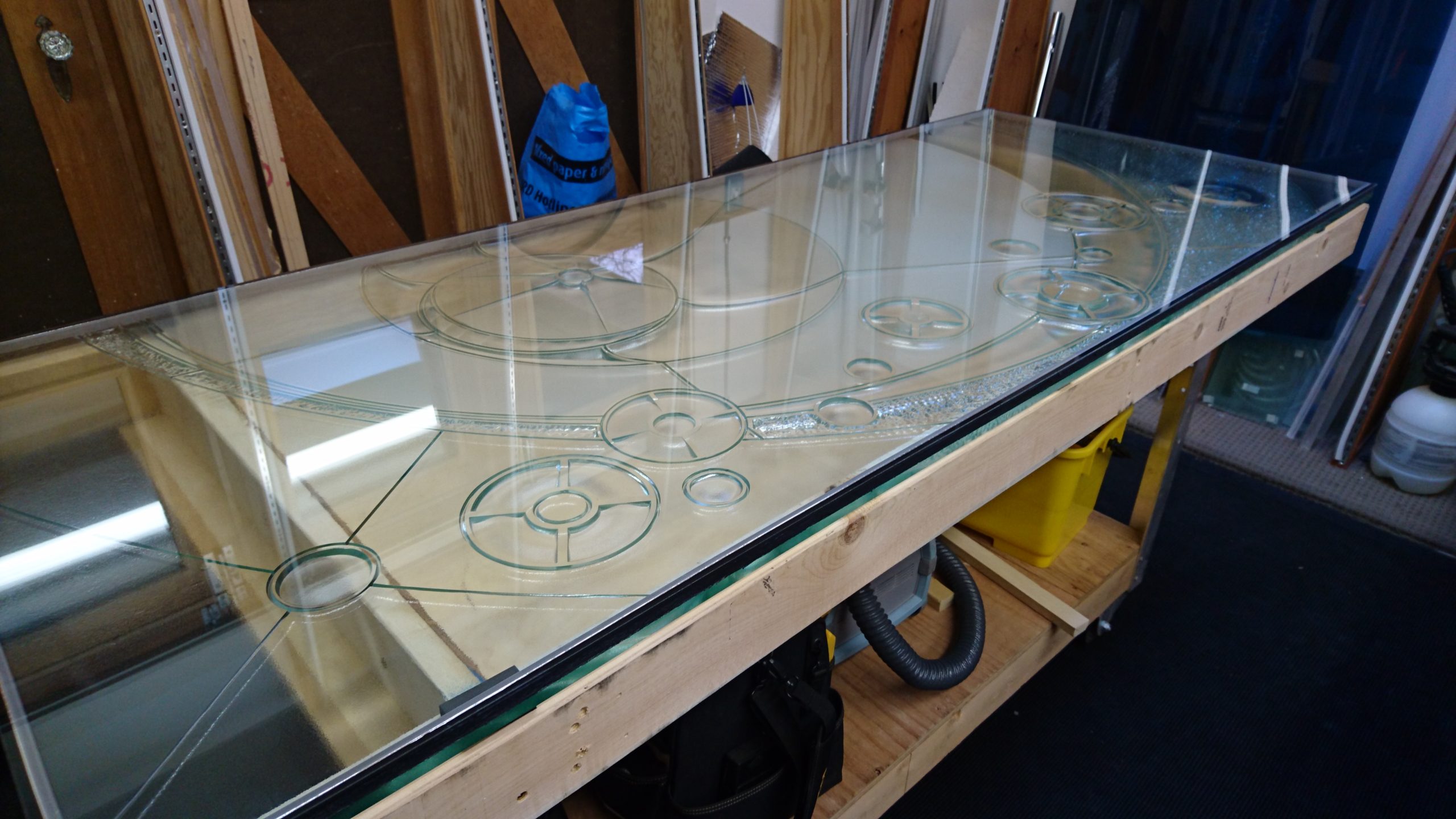 Initial carving for entry doorlite.
