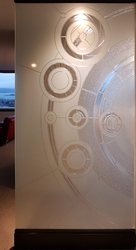 For this project, I was commissioned to create a site/client specific art-glass divider for an apartment undergoing a top to bottom renovation. I met with the clients, the builder, and interior designer Sandy Nygaard, eventually setting upon a course towards “A Table Set For Two”. The apartment reno was going to take a few months, at least. How much of a saga could this project possibly become (hehe)?