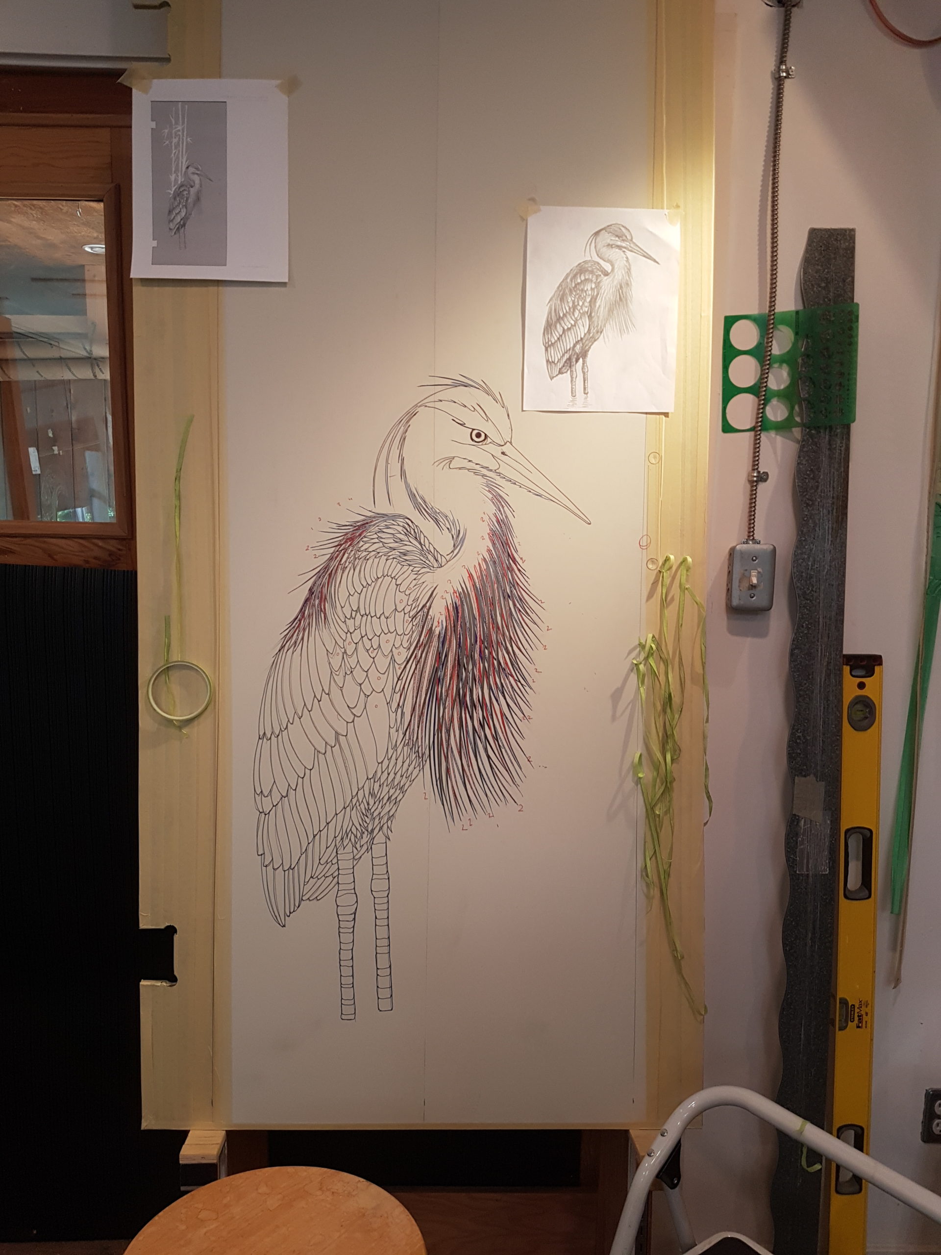 Heron on Frit Glass